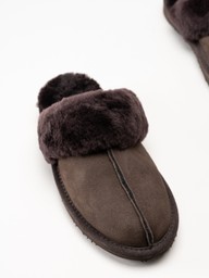 Axelda - Nancy - Mörkbruna fårskinnsfodrade tofflor
