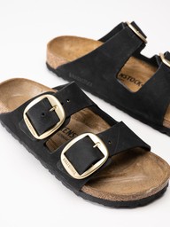 Birkenstock - Arizona Big Buckle nubuck - Svarta slip in sandaler i nubuck