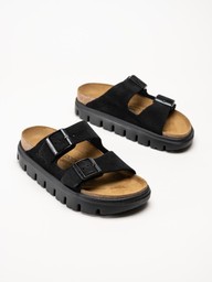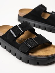 Birkenstock - Arizona Platform Suede - Svarta slip in platåsandaler