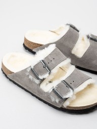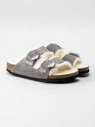 Birkenstock - Arizona Shearling - Gråa fårskinnsfodrade slip in sandaler