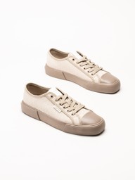 Calvin Klein - Vulc Low Laceup Aop - Beige sneakers i canvas
