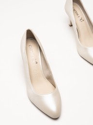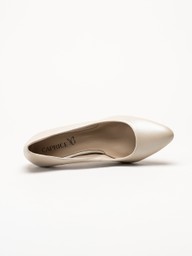 Beige pumps i skinn från Caprice i färgen Stone Perlato. Skorna är tillverkade i mjukt och följsamt skinn som ger ett elegant och tidlöst intryck, perfekta för både festliga tillfällen och mer uppklädda vardagslooks. Invändigt är modellen fodrad med textil för en behaglig känsla mot foten, och innersulan i skinn med Memotion-teknologi anpassar sig efter fotens form och ger mjuk dämpning samt optimal komfort under hela dagen. Yttersulan i syntet bidrar med stabilitet och bra grepp vid gång. En stilren och bekväm sko som kombinerar klassisk design med modern komfort.