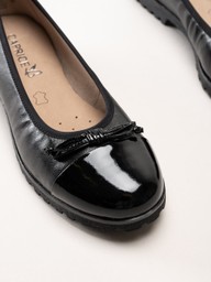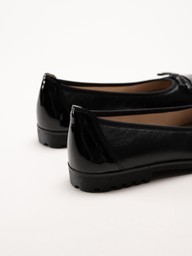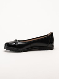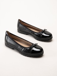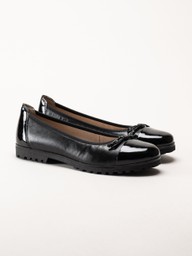Caprice - Svarta ballerina i skinn med lackpartier
