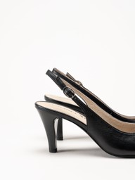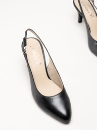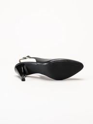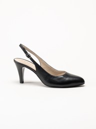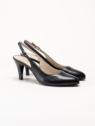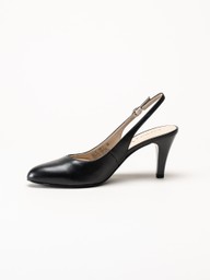 Svarta slingback pumps i skinn från Caprice i färgen Black Nappa. Eleganta och feminina pumps tillverkade i mjukt skinn som ger en sofistikerad och tidlös look, perfekta för fest, bröllop och andra uppklädda tillfällen. Den öppna slingback-designen ger ett lätt och luftigt intryck, och hälremmen har ett litet justerbart spänne som gör det enkelt att anpassa passformen. Modellen har G-läst som ger en något rymligare och bekväm passform. Invändigt är skon fodrad med textil för en behaglig känsla mot foten, och innersulan i skinn med Caprice Memotion-teknologi formar sig mjukt efter foten och ger extra dämpning och komfort under hela dagen. Yttersulan i syntet bidrar med stabilitet och slitstyrka vid gång.