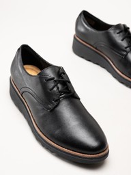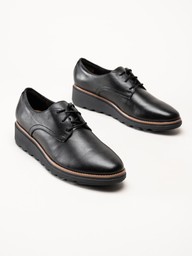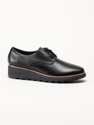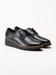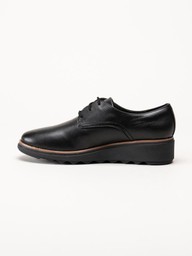 Clarks - Sharon Rae - Svarta kilklackade snörskor i skinn