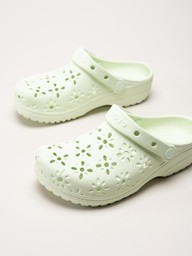 Crocs - Classic Floral Cut Out Clog - Gröna badtofflor