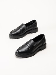Dasia - Lita - Svarta pennyloafers i skinn