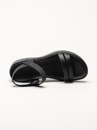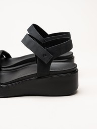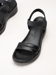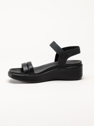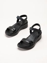 Ecco - Flowt W Wedge - Svarta sandaler i skinn med kilklack