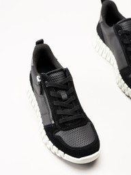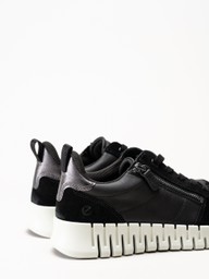 Ecco - Gruuv W Side Zip Lace - Svarta sneakers i nubuck