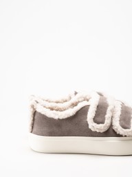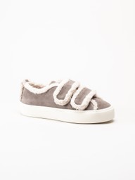 Inuikii - Shearling Low Velcro - Grå ullfodrade sneakers i mocka