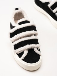 Inuikii - Shearling Low Velcro - Svarta ullfodrade sneakers i mocka