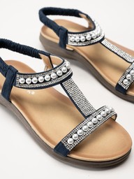 Lunar - 246TANCY - Mörkblå sandaler med pärlor och strass