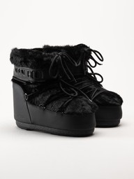 Moon Boot - Icon Low Faux Fur - Svarta vinterboots med fuskpäls