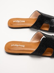 Philip Hog - Victoria - Svarta slip in sandaler med strass