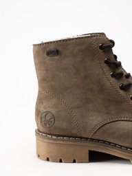 Bruna fodrade kängor från Rieker i färgen Brown. En varm och bekväm känga i syntet med foder i Teddy Pilé och innersula i filt som håller fötterna sköna under kalla dagar. Den slitstarka yttersulan i gummiblandning med grovt mönster ger bra grepp och stabilitet på olika underlag. Modellen har både snörning och dragkedja på insidan för enkel på- och avtagning samt möjlighet att justera passformen. Med Riekers Antistress-teknik och RiekerTex blir skon lätt, flexibel och stötdämpande, vilket gör den perfekt för vardagsbruk under höst och vinter.