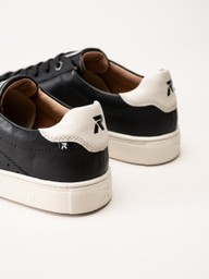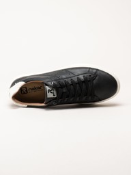 Svarta sneakers i skinn från Rieker, i färgen Black. En stilren och bekväm modell som kombinerar klassisk design med moderna komfortdetaljer. Skorna är tillverkade i mjukt skinn med skinnfoder som ger en följsam och behaglig passform. Den uttagbara innersulan i textil är en del av Rieker Soft-teknologin, som ger extra stötdämpning och komfort under hela dagen. Yttersulan i vitt gummi, kompletterad med en vit hälkappa, ger en snygg kontrast mot det svarta ovandelen och bidrar till en sportig look. Med klassisk snörning får du en justerbar passform som sitter bekvämt vid varje steg. Perfekt som en mångsidig vardagssneaker som passar till det mesta.