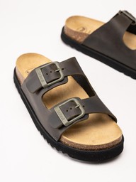 Scholl - Malerra - Khakifärgade slip in sandaler i skinn