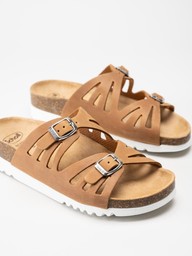 Scholl - Ystad - Ljusbruna slip in sandaler i nubuck