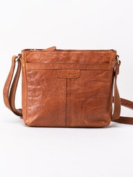 Springfield - Brun axelremsväska i skinn