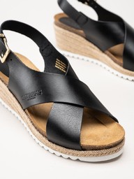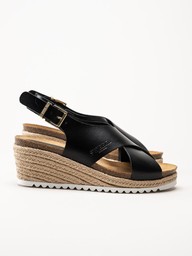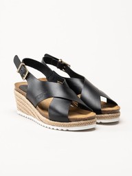 Sweeks - Selma Cross - Svarta kilklackade sandaletter i skinn