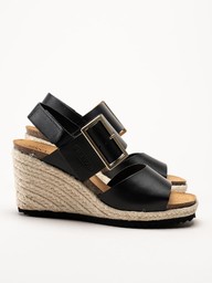 Sweeks - Tyra - Svarta kilklackade sandaletter i skinn