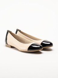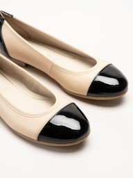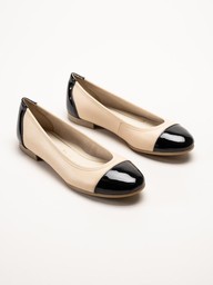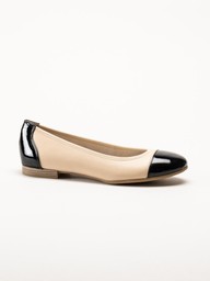 Beige ballerina i skinn Nude Combi från Tamaris. Ge din stil en tidlös touch med Tamaris klassiska ballerina i fint skinn. Låg klack och tunn siluett med svarta lackpartier. Tack vare Touch It-innersulan får du en sko som formar sig efter din fot och ger stöd hela dagen. Perfekt för både inomhusbruk och utomhusäventyr - en ballerina som passar många tillfällen!