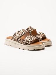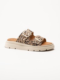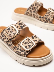 Tamaris - Leopardmönstrade slip in sandaler i mocka