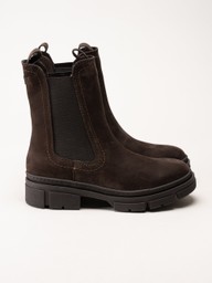 Tamaris - Mörkbruna chelsea boots i nubuck