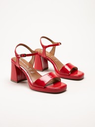 Tamaris - Röda platåsandaletter i lacksyntet
