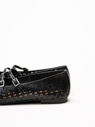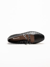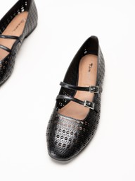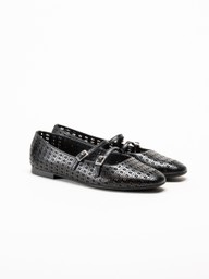 Tamaris - Svarta ballerinaskor i skinn