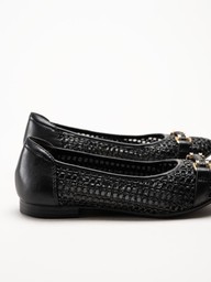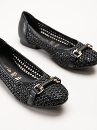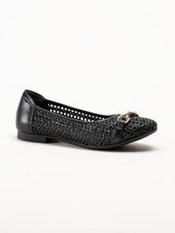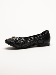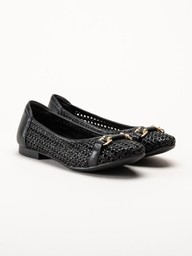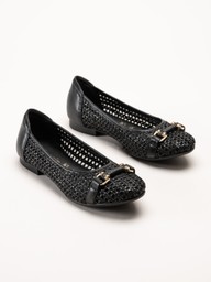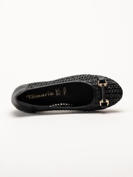 Tamaris - Svarta ballerinaskor i virkad textil