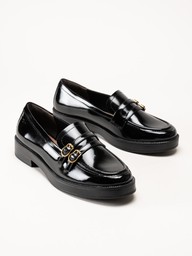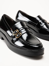 Svarta loafers i polidosyntet