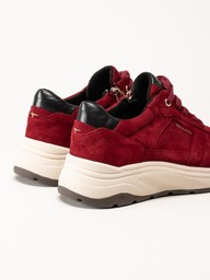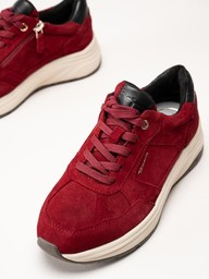 Tamaris - Vinröda sneakers i mocka