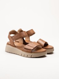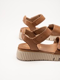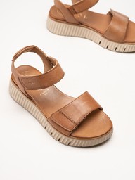 Tamaris - Wide fit - Bruna sandaler i skinn