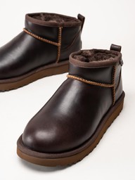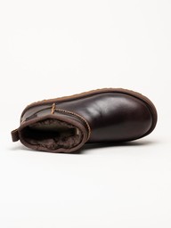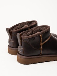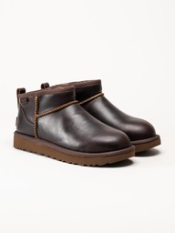 UGG - Classic Ultra Mini LTHR Regen - Bruna låga ullfodrade boots