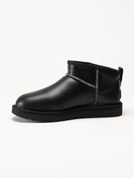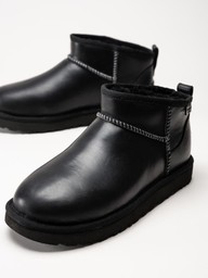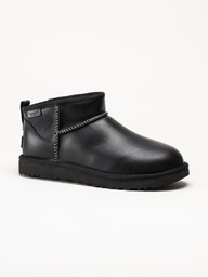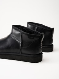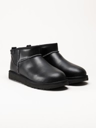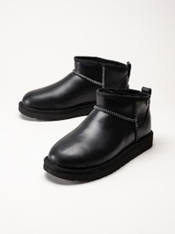 UGG - Classic Ultra Mini LTHR Regen - Svarta låga ullfodrade boots
