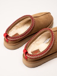 UGG - K Tazz - Ljusbruna fårskinnsfodrade tofflor i mocka