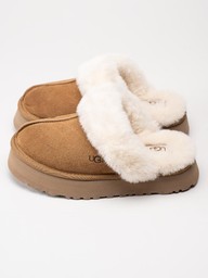 UGG - W Disquette - Ljusbruna fårskinnsfodrade tofflor i mocka