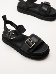 UGG - W Goldenstar Villa - Svarta platåsandaler i nubuck och skinn